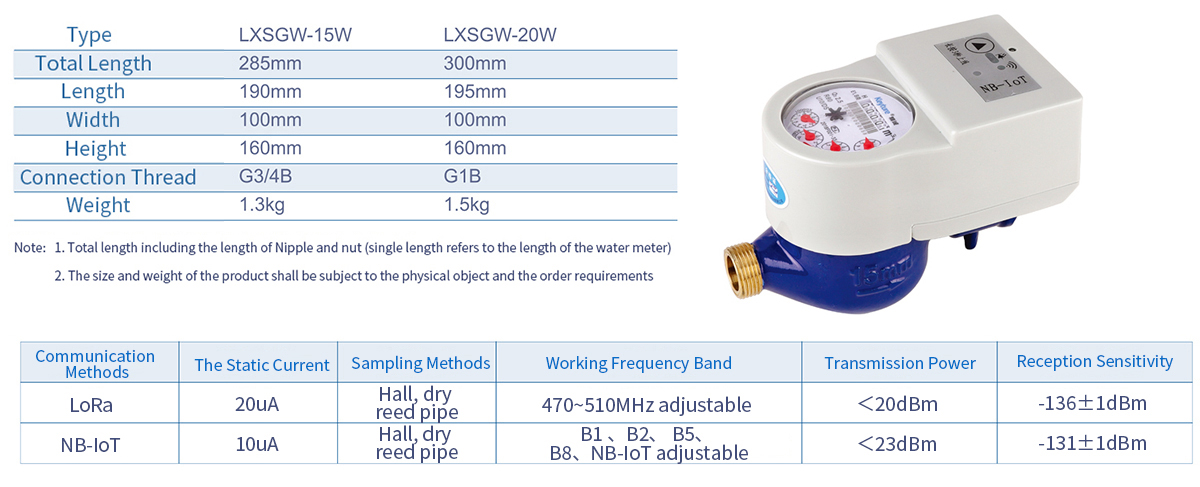 This series of products is an electromechanical separated IoT water meter, which can separate the electronic device (data sampling, wireless transmission) and the mechanical water meter completely independently, and realize the wireless upload of water volume information through the NB-loT/Lora network.