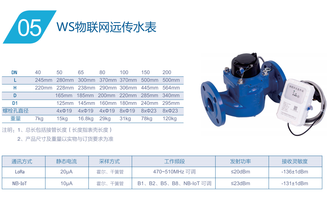 產品展示  ——  大口徑水表系列   ——   WS物聯網遠傳水表