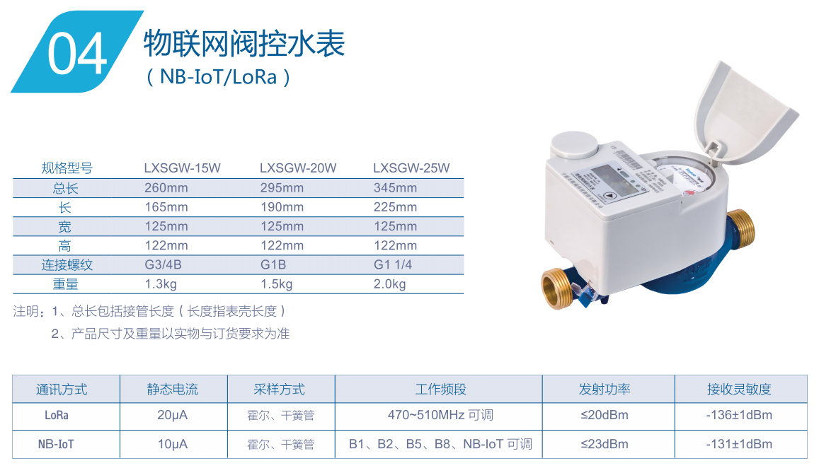 產品展示  ——  物聯網水表系列   ——   物聯網閥控水表(NB-loT/LoRa)