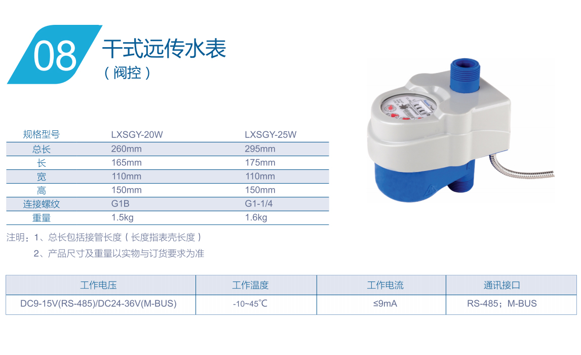 產品展示  ——  有線遠傳水表系列   ——   干式遠傳水表(閥控)
